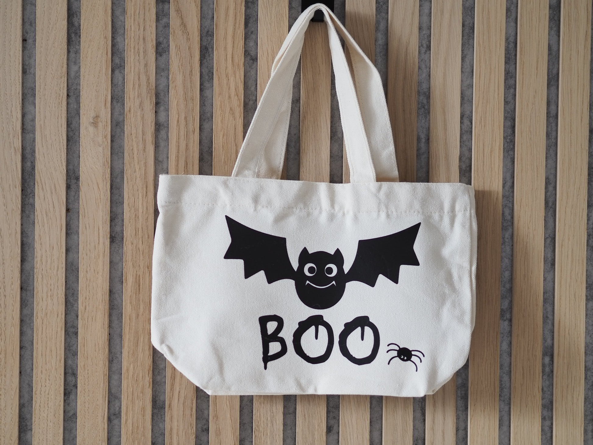 Kleiner, niedlicher Stoffbeutel mit Halloween-Motiv "Fledermaus" für die Süßigkeiten-Ausbeute der Kinder.