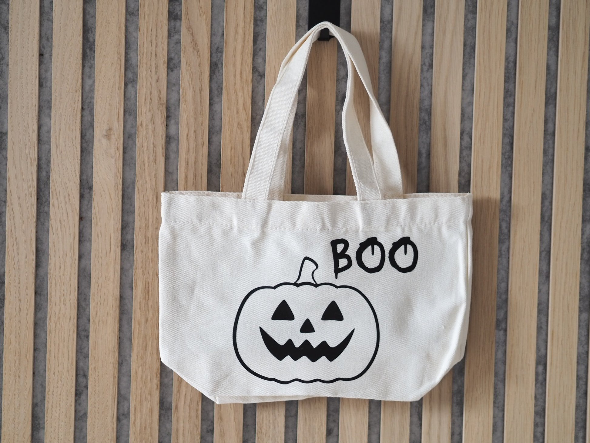 Kleiner, niedlicher Stoffbeutel mit Halloween-Motiv "Kürbis" für die Süßigkeiten-Ausbeute der Kinder.
